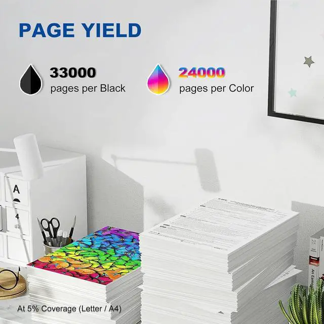 Impressive Page YieldEach black/828422 toner cartridge prints up to 33000 pages, each color(888311/888310/888309) toner cartridge prints up to 24000 pages (5% coverage on A4 papers)