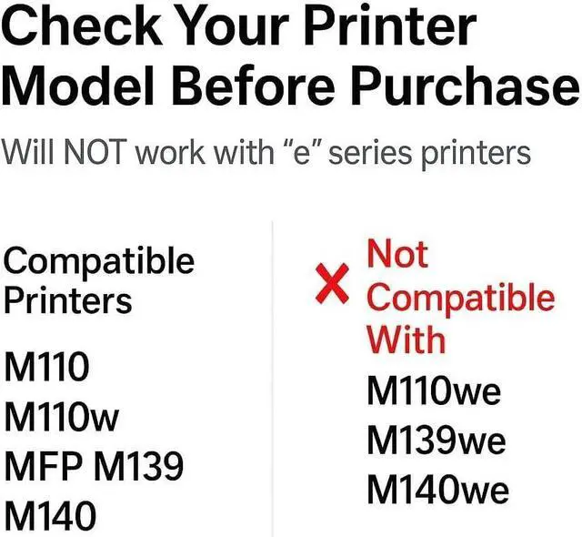 COMAPTIBLE PRINTERS -. Laser Printers M110, Laser Printer M110W, Laser Printer MFP M139, Laser Printer M140W,
