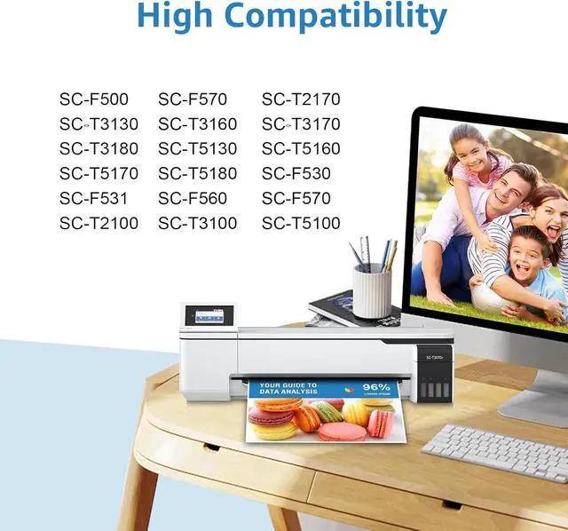 Compatible Printers: Compatible for SureColor SC-F500 SC-F530 SC-F531 SC-F560 SC-F570 SC-F571 SC-T2100 SC-T3100 SC-T3100N SC-T5100 SC-T5100N T2170 T3130 T3130N T3160 T3170 T3180X T3180D SC-T3180N T5130 T5160 T5170 SC-T5180N SC-T5180 Printers.