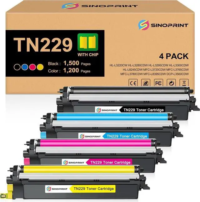 Compatible Printers : TN229XL TN-229bk/c/m/y toner Compatible for Brother HL-L3280CDW/HL-L3220CDW/HL-L3295CDW/HL-L3300CDW/HL-L8245CDW Compatible for MFC Series: MFC-L3720CDW/MFC-L3765CDW/MFC-L3780CDW/MFC-L8395CDW Printers.