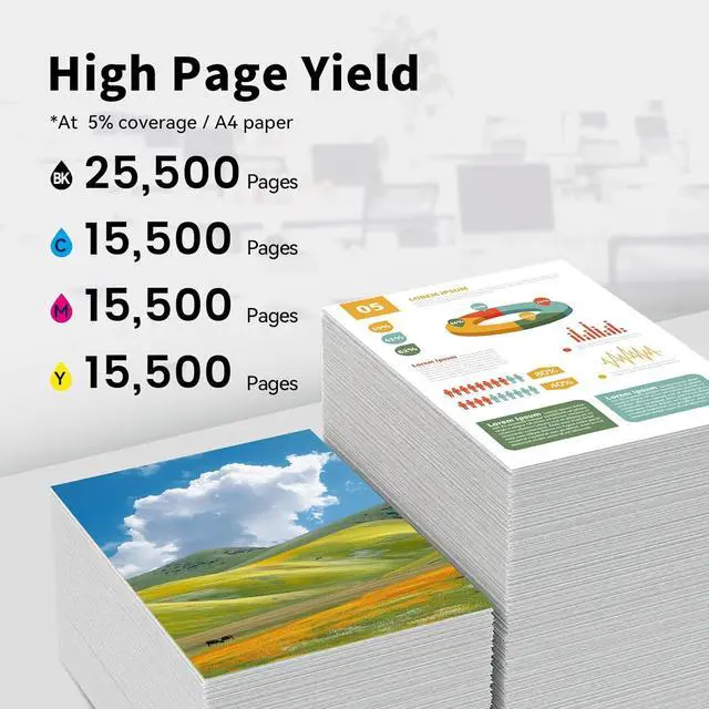 High Page Yield: Up to 25,500 pages per tk-8307 black toner cartridges, color toner up to 15,500 pages, at 5% coverage Letter/A4