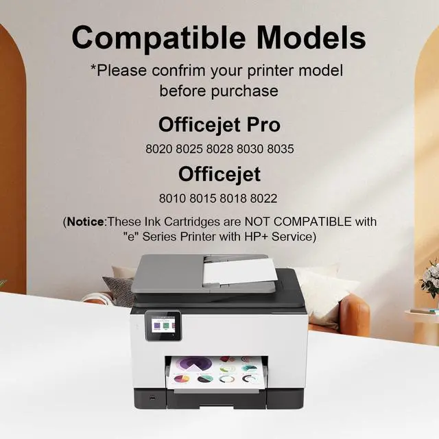 Compatible with HP Officejet Pro 8020 8025 8028 8030 8035; OfficeJet 8010 8015 8018 8022 Printers (Notice: These Ink Cartridges are NOT COMPATIBLE with "e" Series Printer with HP+ Service)