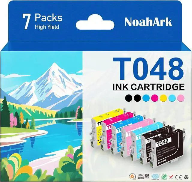 NoahArk 7 Packs T048 T48 Remanufactured Ink Cartridge Replacement for 48 for Stylus Photo R200 R220 R300 R300M R320 R340 RX500 RX600 RX620 Printer (2BK/1C/1M/1Y/1LC/1LM,7-Pack)