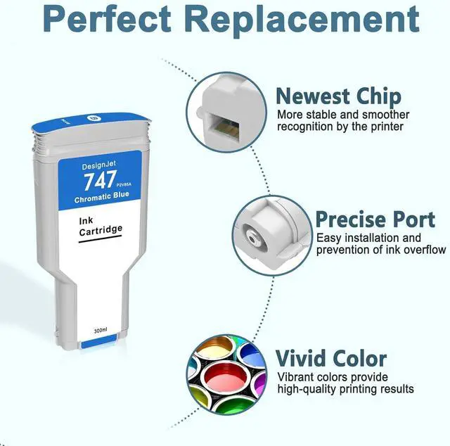 Superior Quality: This high-yield HP747 ink cartridge uses the latest chip technology and high-quality pigment ink, with an anti clogging nozzle design and easy installation