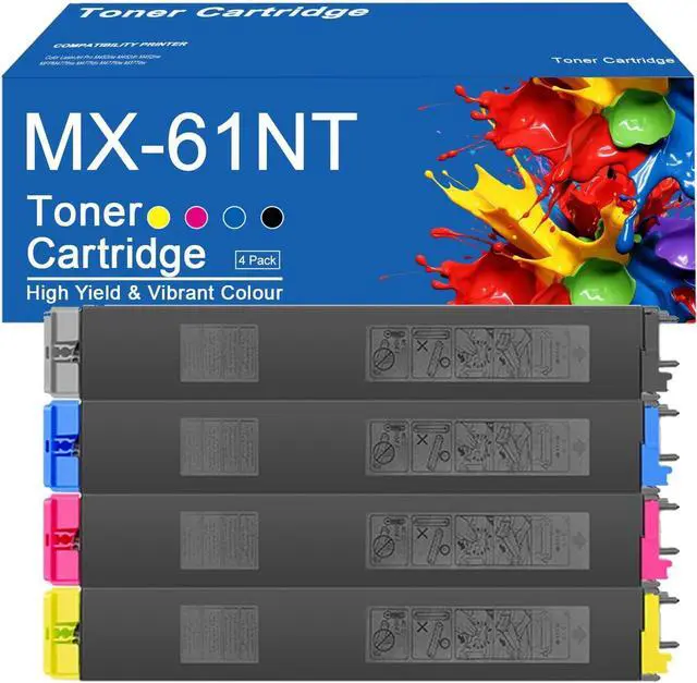 Package Contents4-Pack MX-61NT-BA Black Toner Cartridge x1,MX-61NT-CA Cyan Toner Cartridge x1, MX-61NT-MA Magenta Toner Cartridge x1, MX-61NT-YA Yellow Toner Cartridge x1
