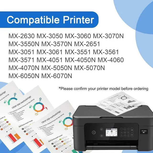 Compatible Printer: For Sharp MX-2630N MX-2651 MX-3050N MX-3050V MX-3070N MX-3070V MX-3071 MX-3550N MX-3550V MX-3551 MX-3570N MX-3570V MX-4050N MX-4050V MX-4051 MX-4070N MX-4071 MX-5050N MX-5070N MX-5070V MX-6050N MX-6050V MX-6070N MX-6070V MX-3560V MX-3060V Printers.
