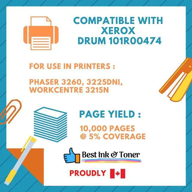 Best Replacement for Xerox Drum 101R00474 Compatible for Xerox Phaser 3260, 3225DNI, WORKCENTRE 3215NI (10000 Page Yield for Drum) (1 X Drum)