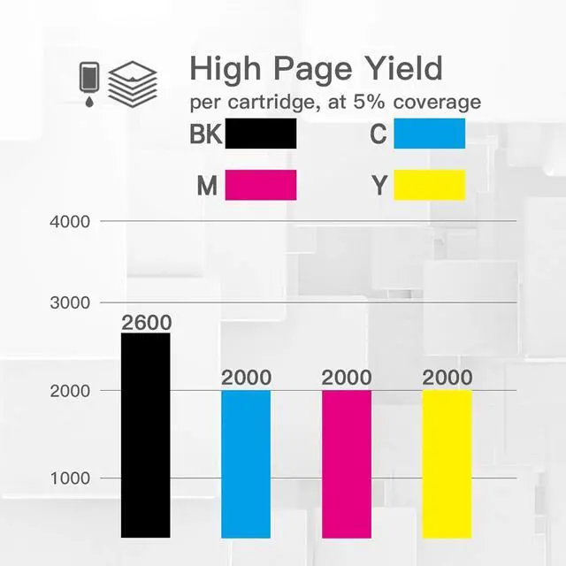 [Page Yield]: Up to 2,600 Pages per Black cartridge, 2,000 Pages per Color cartridge (at 5% coverage of A4 paper)
