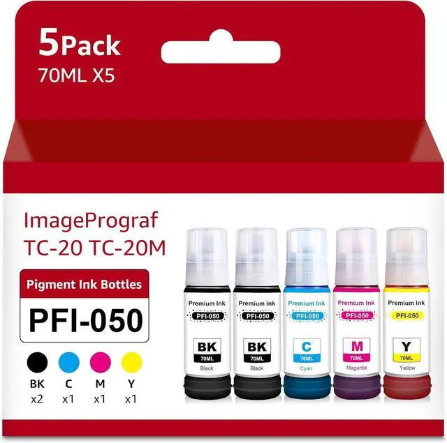 Compatible PFI050 Ink Bottle Replacement for PFI-050 PFI-050BK PFI-050C PFI-050M PFI-050Y Pigment Ink Cartridge for ImagePrograf TC-20 TC-20M Printer ( 2Black 1Cyan 1Magenta 1Yellow)