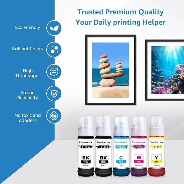 Compatible PFI050 Ink Bottle Replacement for PFI-050 PFI-050BK PFI-050C PFI-050M PFI-050Y Pigment Ink Cartridge for ImagePrograf TC-20 TC-20M Printer( 2Black 1Cyan 1Magenta 1Yellow)