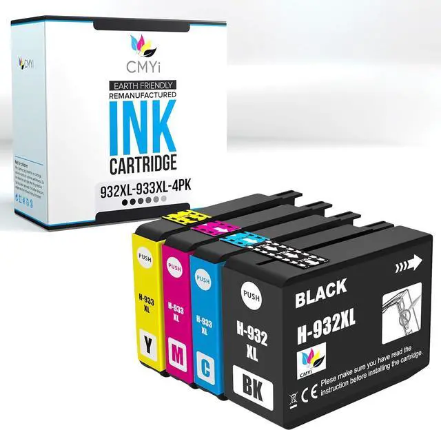 Package Contents: 1x CMYi 932XL Black, 1x 933XL Cyan, 1x 933XL Magenta, 1x 933XL Yellow ink cartridge (This is not an OEM product)