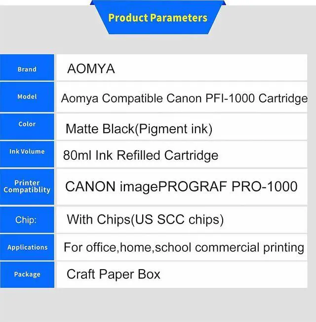 You Will Receive: 1 Pack Matte Black 80ML Pigment ink cartridge with SCC chip.