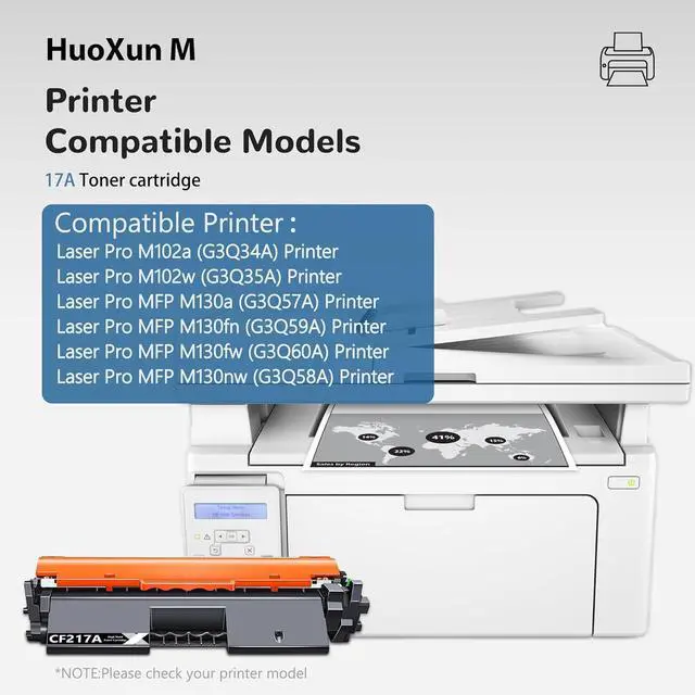 17a black toner Compatibility: work well with Pro MFP M130a Pro MFP M130nw Pro MFP M130fn Pro MFP M130fw Pro M102a Pro M102w Series Printers