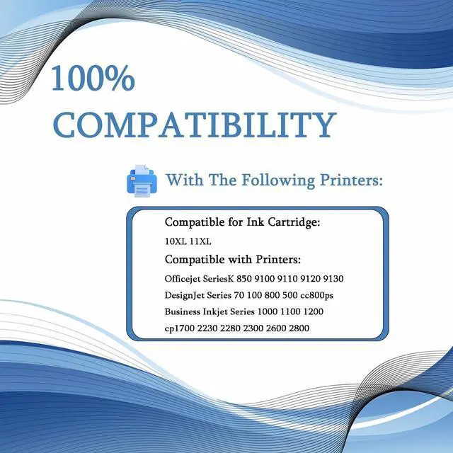 Compatible With Printers: 10XL Ink Cartridge Compatible for HP Ofhcejet SeriesK 850 9100 9110 9120 9130 DesignJet Series 70 100 800 500 cc800ps Business Inkjet Series 1000 1100 1200cp 1700 2230 2280 2300 2600 2800