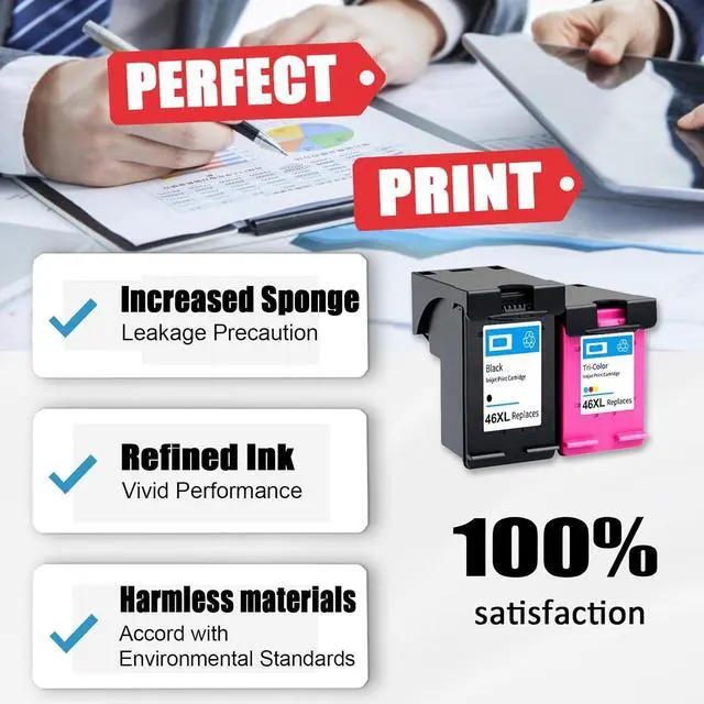 Premium quality materialsOur 46XL ink cartridges mesh design diameter of the filter is 2-3 microns, which will not block the print head. Intelligent chips ensure ink cartridges are perfectly compatible with the New and old printers.