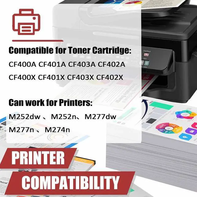 High compatibility201A toner cartridges are specially designed to be compatible for HP Color LaserJet Pro M252dw M252n MFP M277dw M277n M274n Printers.