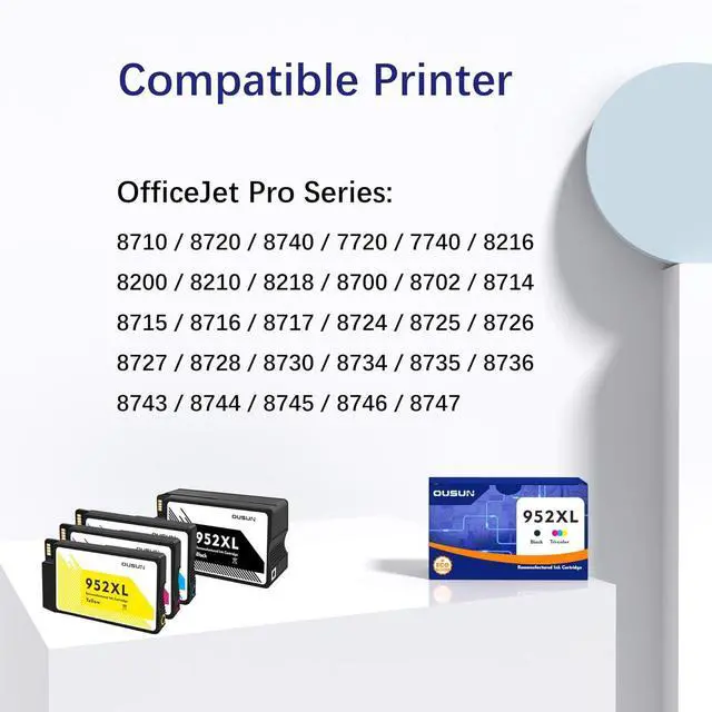 QUALITY GUARANTEED:Please be aware that Ousun 952 XL is covered by a full manufacturers warranty. Each 952 XL printer cartridge is strictly tested in production to ensure that ink 952 xl cartridges can be recognized and used by the printer.Smooth printing without paper jam or ink leakage.