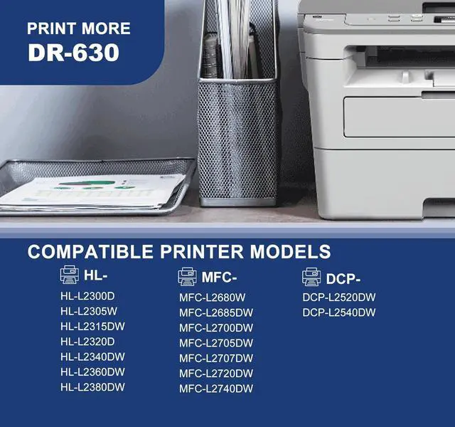 Compatible Printer Model : HL-L2300D, HL-L2305W,HL-L2315DW, HL-L2320D,HL-L2340DW HL-L2360DW,HL-L2380DW,MFC-L2680W,MFC-L2685DW, MFC-L2700DW, MFC-L2705DW,. MFC-L2707DW, MFC-L2720DW, MFC-L2740DW, DCP-L2520DW, DCP-L2540DW