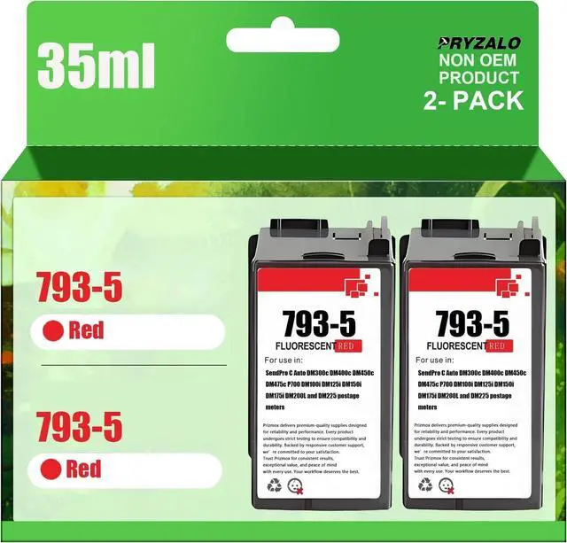 Package contents:2-Pack 35ML High Yield Fluorescent Red Postal Ink Replacement for Pitney Bowes 793-5 Ink Cartridge for DM100, DM200, DM300 and SendPro, Red Ink, 35 ml