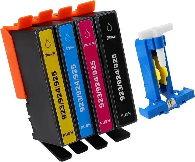 : 1 x 923 Black Ink Cartridges, 1 x 923 Cyan Ink Cartridges, 1 x 923 Magenta Ink Cartridges, 1 x 923 Yellow Ink Cartridges, totally 4 Pack for hp 923xl ink cartridges combo pack; 1 x Chip Tool and 1 x User Guide
