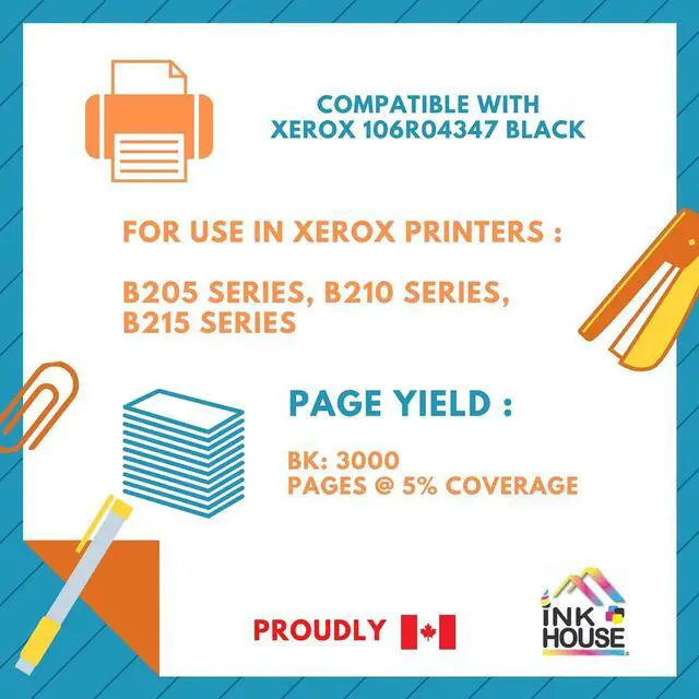 High-Quality Black Toner: Replacement for Xerox 106R04347 Black toner cartridge. Produces sharp, consistent black text and graphics, ensuring professional-quality documents for office, home, and educational printing needs.