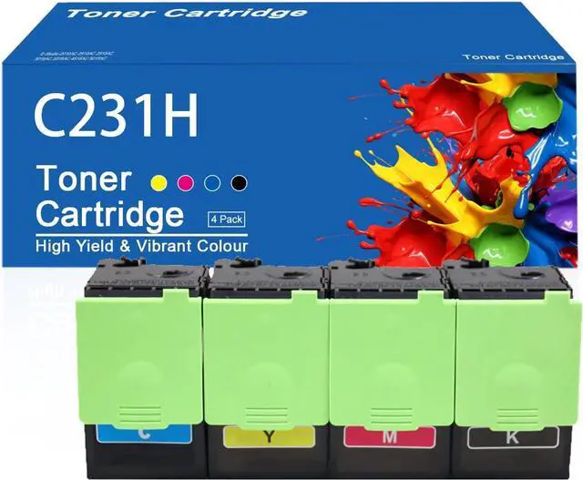 Package Contents4-Pack C231HK0 Black Toner Cartridge x1,C231HC0 Cyan Toner Cartridge x1, C231HM0 Magenta Toner Cartridge x1, C231HY0 Yellow Toner Cartridge x1