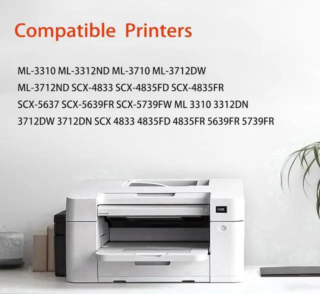 [Printer Compatibility] This toner cartridge is compatible with ML-3310, ML-3312ND, ML-3710, ML-3712DW, ML-3712ND, SCX-4833, SCX-4835FD, SCX-4835FR, SCX-5637, SCX-5639FR, SCX-5739FW, ML 3310, 3312DN, 3712DW, 3712DN, SCX 4833, 4835FD, 4835FR, 5639FR, and 5739FR printers