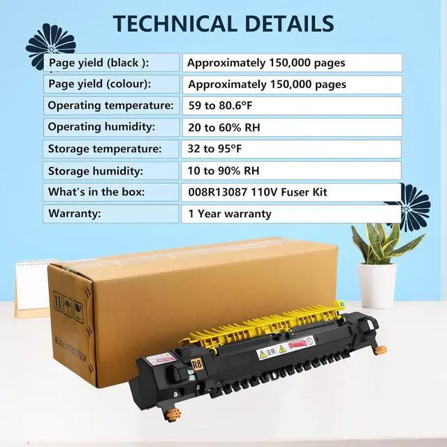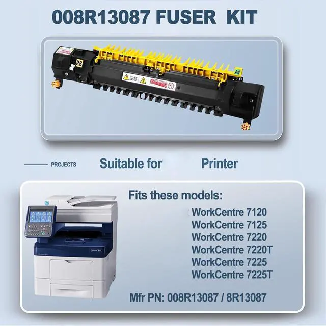 Fuser Specifications: For 008R13087 / 8R13087 fuser fixtureVoltage: 110/ 120 Volt, 150K Color or Black Yield