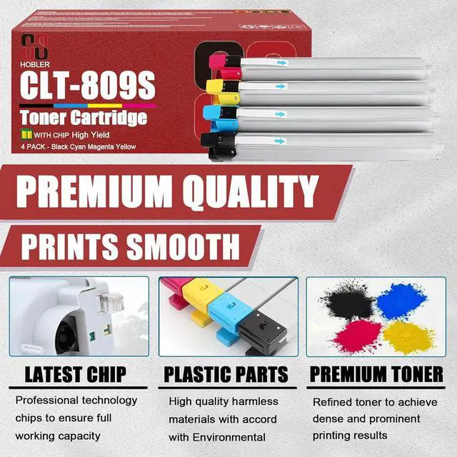 Our AdvantagesOur CLT-K809S CLT-C809S CLT-Y809S CLT-M809S toner cartridge is easy to load, counts accurately, and prints out clearly and neatly. Intelligent chips ensure toner cartridges are compatible with the New and old Printer.