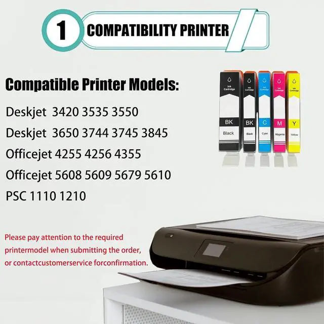 Printers Ink Cartridges CompatibilityCompatible for HP Deskjet 3420 3535 3550 3650 3744 3745 3845 Officejet 4255 4256 4355 5608 5609 5679 5610 PSC 1110 1210