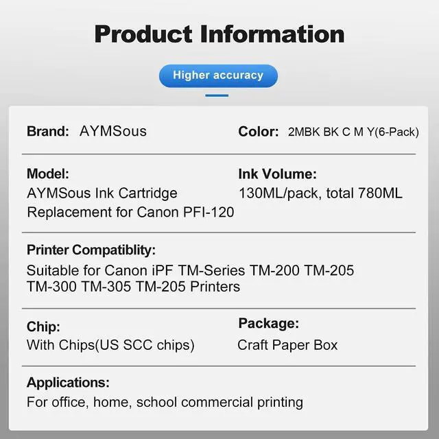 Compatible Printers: Perfectly work well with Canon iPF TM-Series TM-200 TM-205 TM-300 TM-305 TM-205 Printers