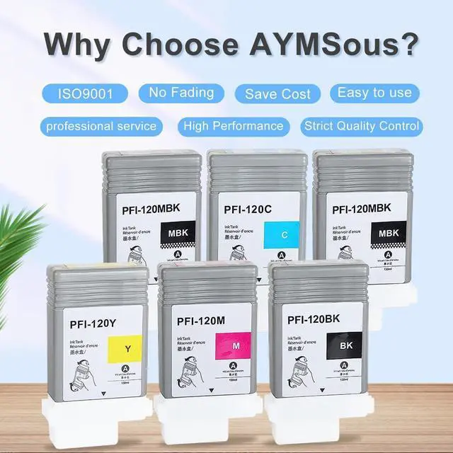 You Will Receive: 2 Matte black/ 1 Black/ 1 Cyan/ 1 Yellow/ 1 Magenta (6-Pack) compatible ink cartridges replacement for Canon PFI-120