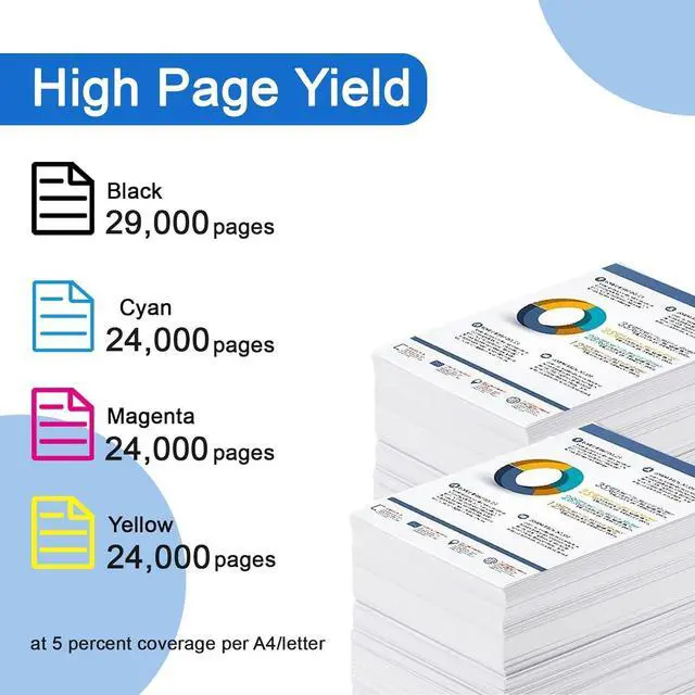 Paper YieldT-FC28 black can print up to 29000 pages, T-FC28 colors each can each print up to 24000 pages, these page yields are based on 5% coverage with A4 letterivity