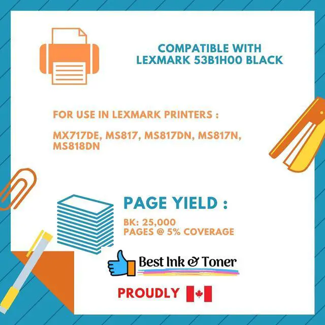 53B1H00 Remanufactured for Lexmark MS817 MS818 High Yield Toner Cartridge - Ships from Canada