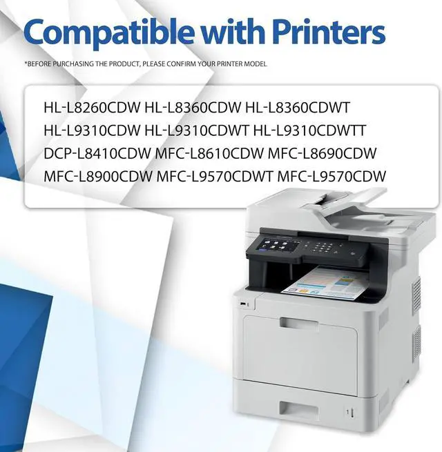 • Compatible Printer Models : Replacement for Brother HL-L8260CDW HL-L8360CDW HL-L8360CDWT HL-L9310CDW HL-L9310CDWT HL-L9310CDWTT DCP-L8410CDW MFC-L8610CDW MFC-L8690CDW MFC-L8900CDW MFC-L9570CDWT MFC-L9570CDW Printer
