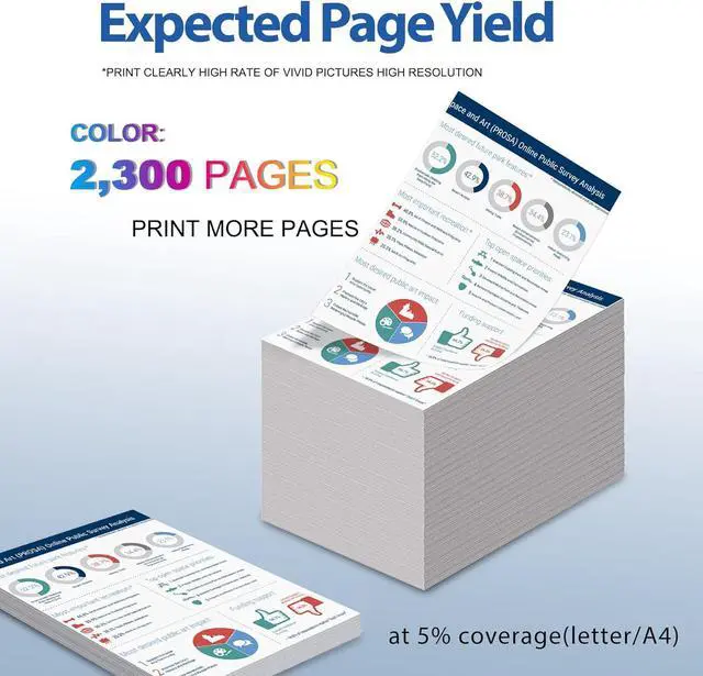 • Page Yield : Per color toner is about 2,300 pages at 5% coverage of paper A4