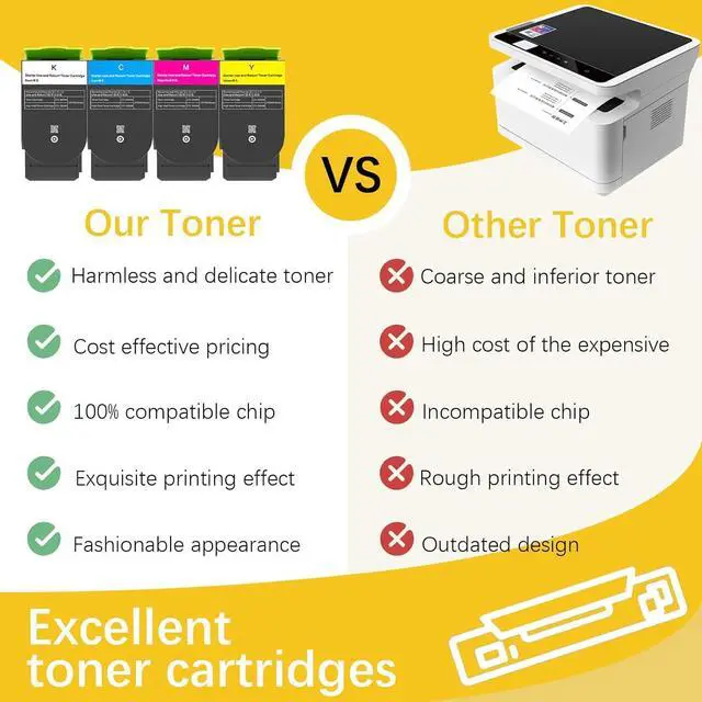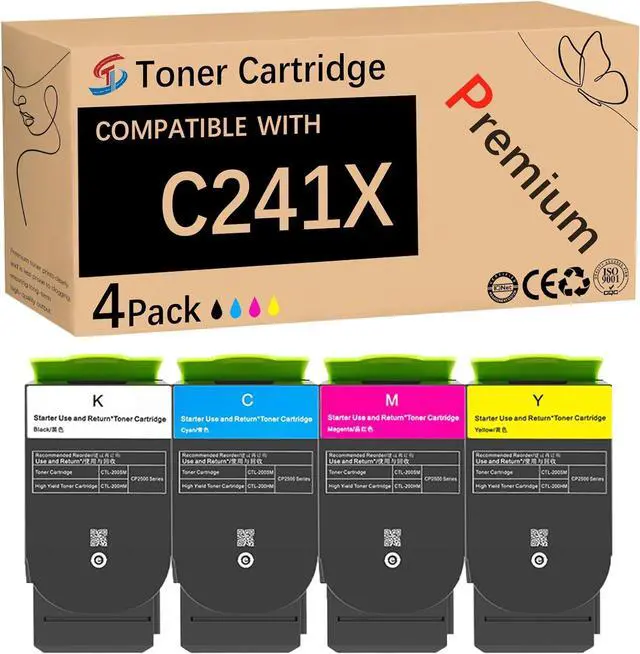 With Chip: Compatible Toner Cartridge Replacement for Lexmark C241X C241XK0 C241XC0 C241XM0 C241XY0 Toner cartridges set comes with bulit-in chip No need to replace chips from empty original toner before use