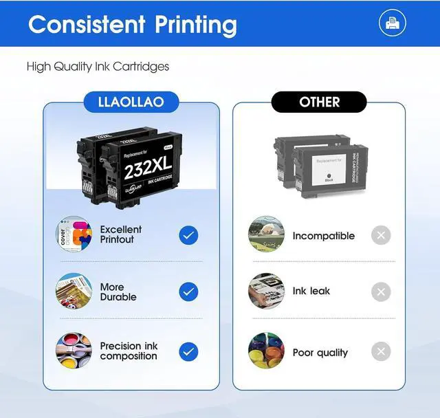 Our 232xl ink replacement for epson ink 232 through strict quality inspection to bring you reliable printing effect