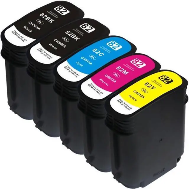 Compatible 10 82 Ink Cartridge C4844A C4911A C4912A C4913A Replacement for Designjet 500 500ps 800 800ps 815 MFP 820 MFP Printer (5 Pack, 2 Black 1 Cyan 1 Magenta 1 Yellow)