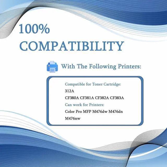 Compatible With Printers: 312A Toner Cartridges Compatible for HP Color Pro MFP M476dw M476dn M476nw Printers