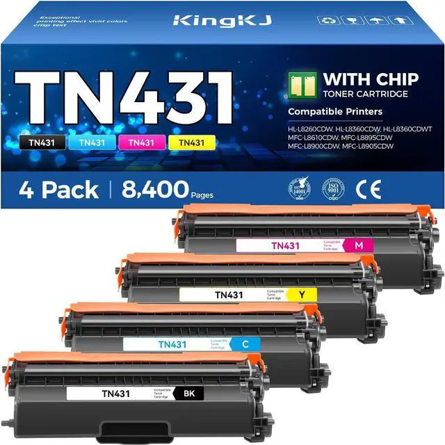 What You Get: 4-Pack of TN431 Toner Cartridges (Black Cyan Magenta Yellow)