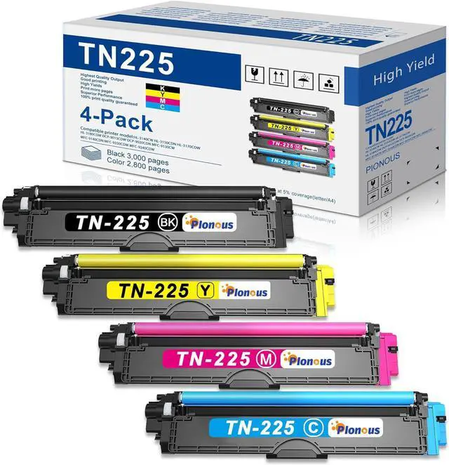 Package Contents: 1 x TN225 Black, 1 x TN225 Cyan, 1 x TN225 Magenta, 1 x TN225 Yellow (Total 4 Pack)