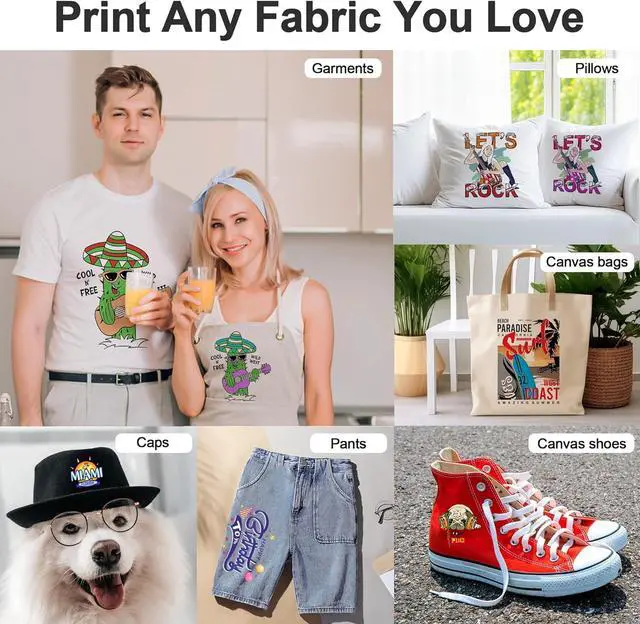 Versatile Application: Perfect for a variety of materials such as cotton, polyester, linen, nylon, and polyester-cotton blends. Ideal for customizing T-shirts, denim, hoodies, decorative fabrics, curtains, and bedding, as long as they can withstand heat pressing.