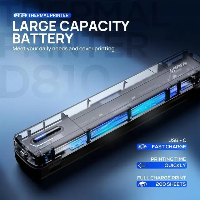 Clear Printing--POLONO D810 Portable Inkless Printer delivers crisp, high-resolution prints with advanced inkless technology. This wireless printer operates for up to 49 minutes on a single charge, producing approximately 200 sheets