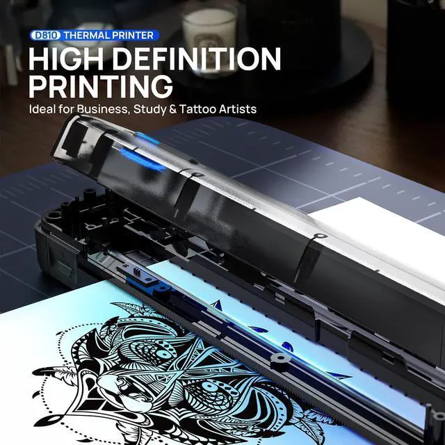 Widely Use--Package Contents: D810 Inkless Printer, 20 US Letter sheets, user manual, guide card, USB drive, and Type-C cable (charging adapter not included). This inkless thermal printer is perfect for home, school, travel, and office use