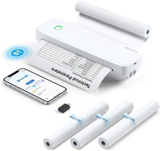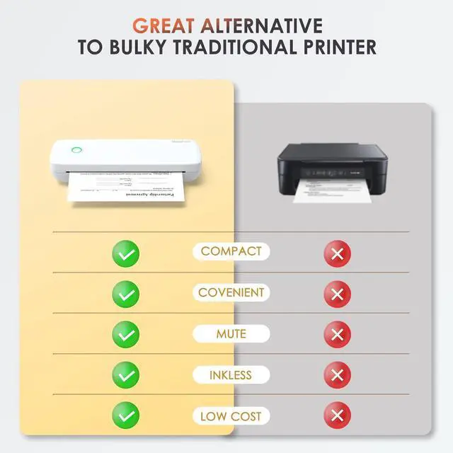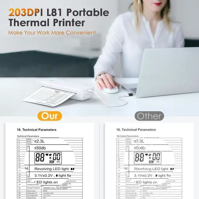 Versatile Printer: This all-in-one printer is capable of printing anything you need, from PDF files and test papers to webpages, contracts, photos, and pictures. With a built-in paper bin, it's perfect for printing large volumes of paper during business trips. It's an excellent tool for study and office work, offering inkless printing that eliminates the need for ribbons.
