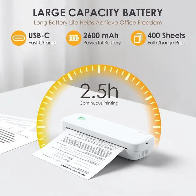 Robust & Long-Lasting: It features a built-in 2600mAh large capacity lithium battery, capable of printing about 2.5hrs after a full charge. The premium print head can run up to 50km, durable to use for a long time.
