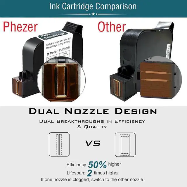 [42ml Quick-Drying Ink Cartridge Included]: This handheld inkjet printer comes with a black original high-definition 42ml quick-drying ink cartridge that can effectively prevent from ink-leaking or nozzle-blocking problem in the maximum limit and provide excellent smooth & brightly-colored printing experience. Ink colors available: Black, white, Yellow, red, blue, green, invisible, UV.