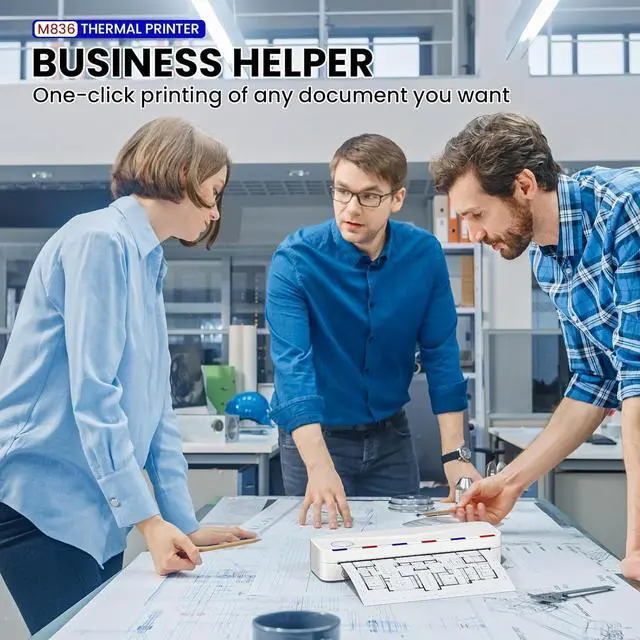 High Compatibility - M836 inkless portable printer compatible with Phone, iPad and PC. The Small printer supporting iPhone, Android Phone, iPad by Bluetooth connection. And it can also printing by laptop or computer connect with USB cable. (1. First, please download the printer driver prior to installation on your computer. 2. The printer must be loaded with thermal paper and connected to the computer via USB to ensure it is recognized by the system.)