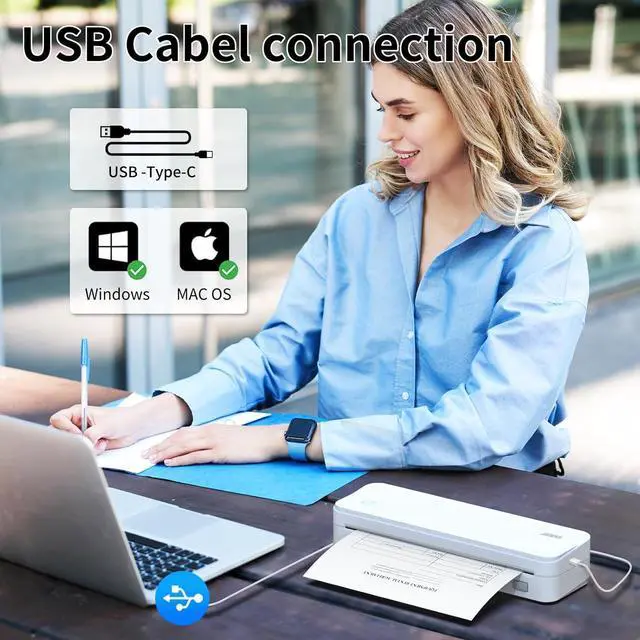 Simple Setup via Bluetooth or USB: Connect the inkless printer effortlessly to iOS, Android, laptops, or computers. Set up in under 5 minutes with the dedicated app or driver, ensuring quick printing from your smartphone or PC.